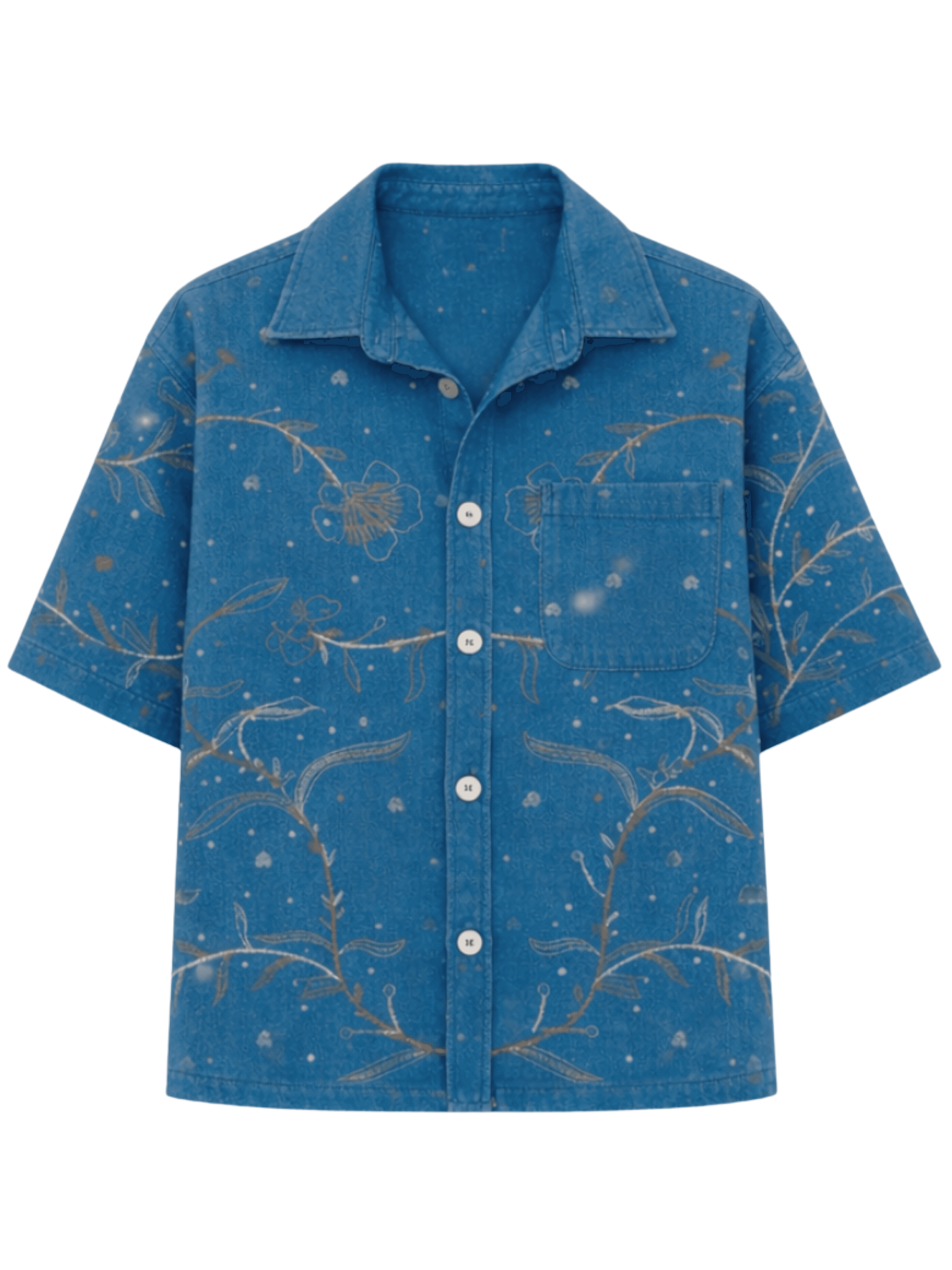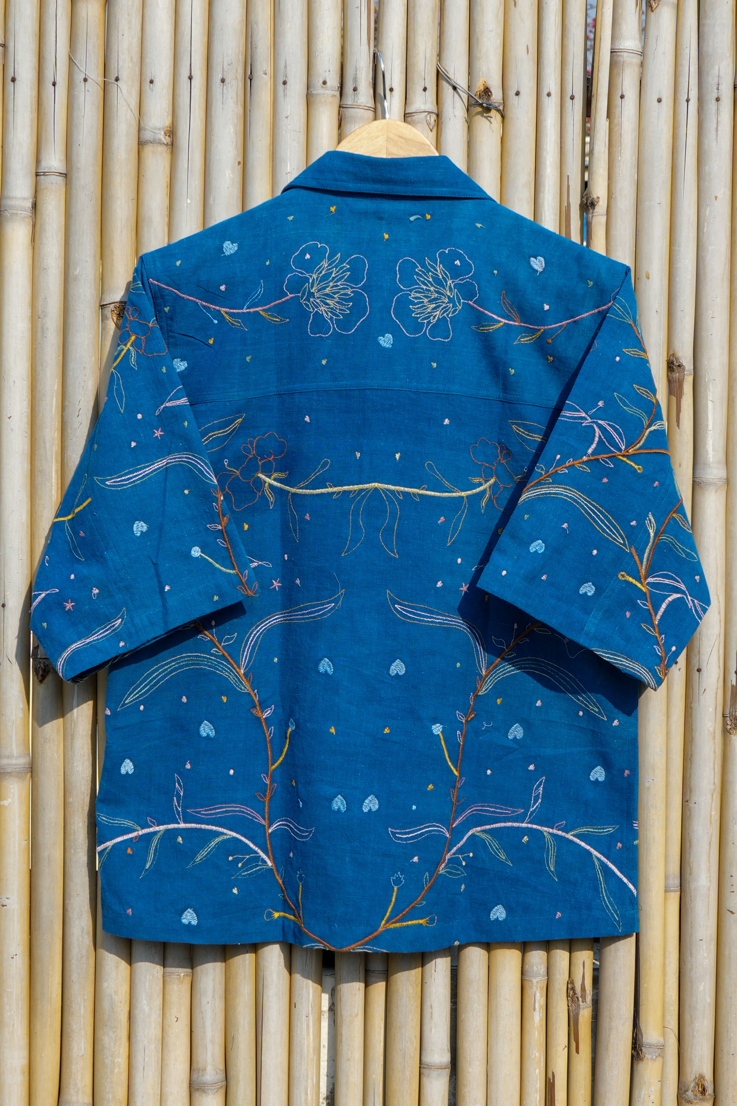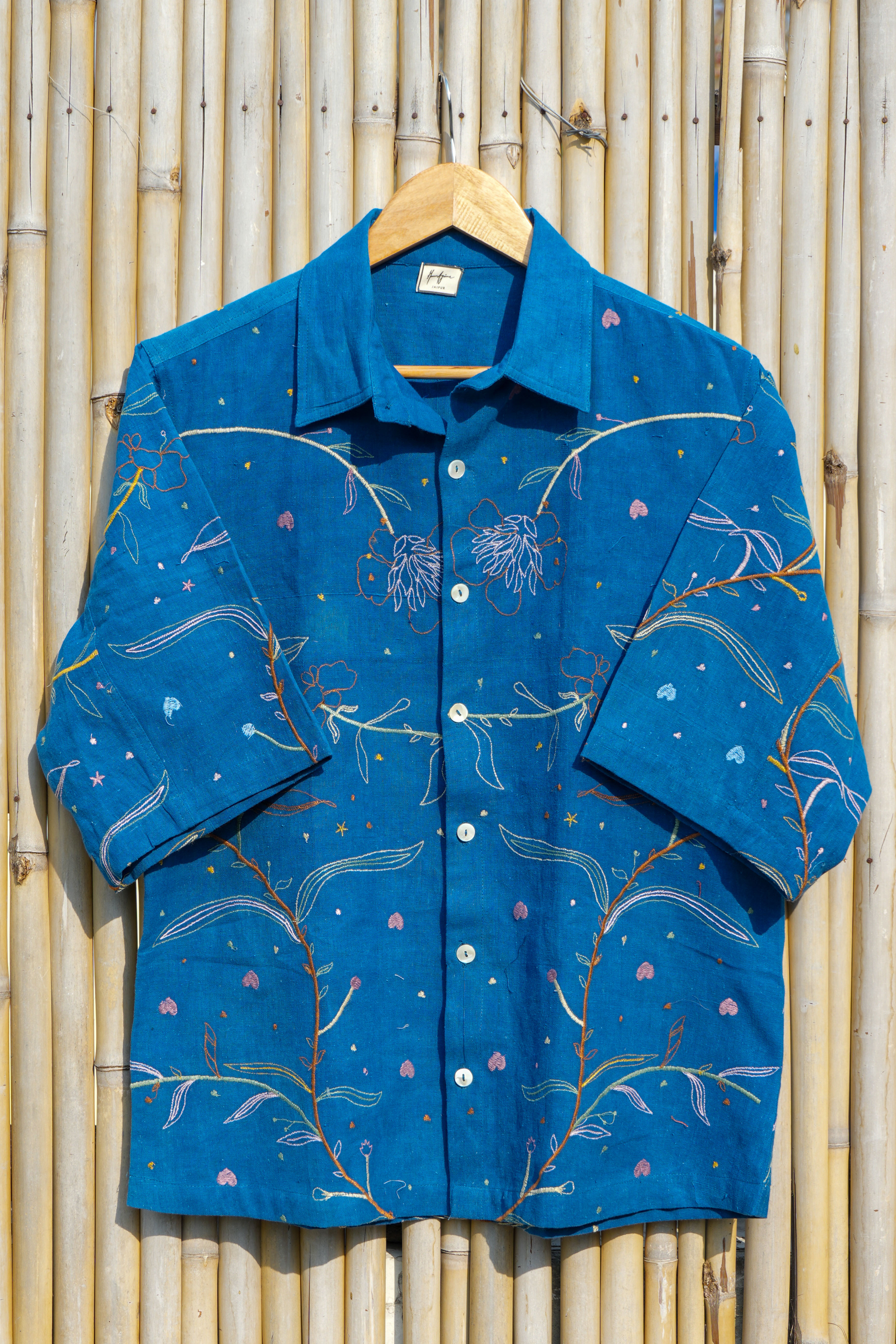 Anurag Rao envisioned a shirt that feels like carrying a small garden with you. Flowing vines, delicate flowers, and scattered motifs create a calm, nature-inspired expression.