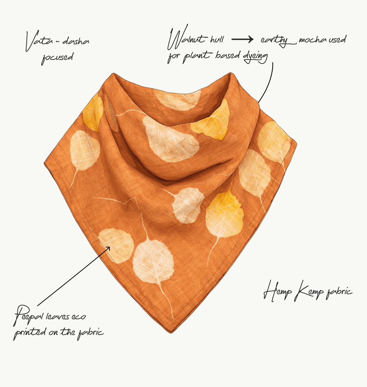 Designed to gently shield the head, this wrap brings grounding warmth and calm to an overstimulated mind. The peepal leaf motif symbolizes protection, wisdom, and quiet stability.