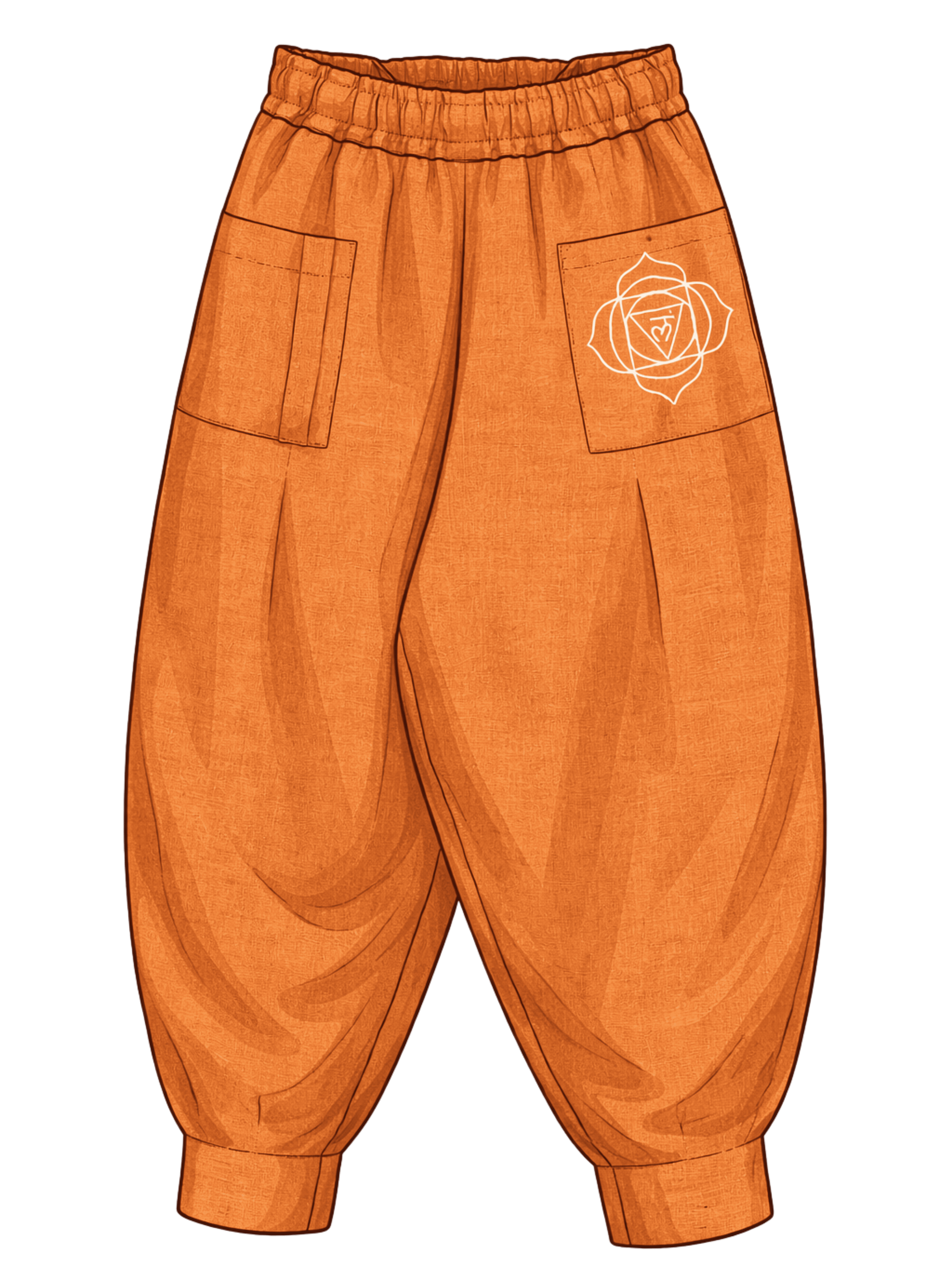 Created for balance and ease, these pants support gentle movement while grounding Vata energy. The four-petaled lotus symbolizes stability, calm, and the rooting of the sacral center.