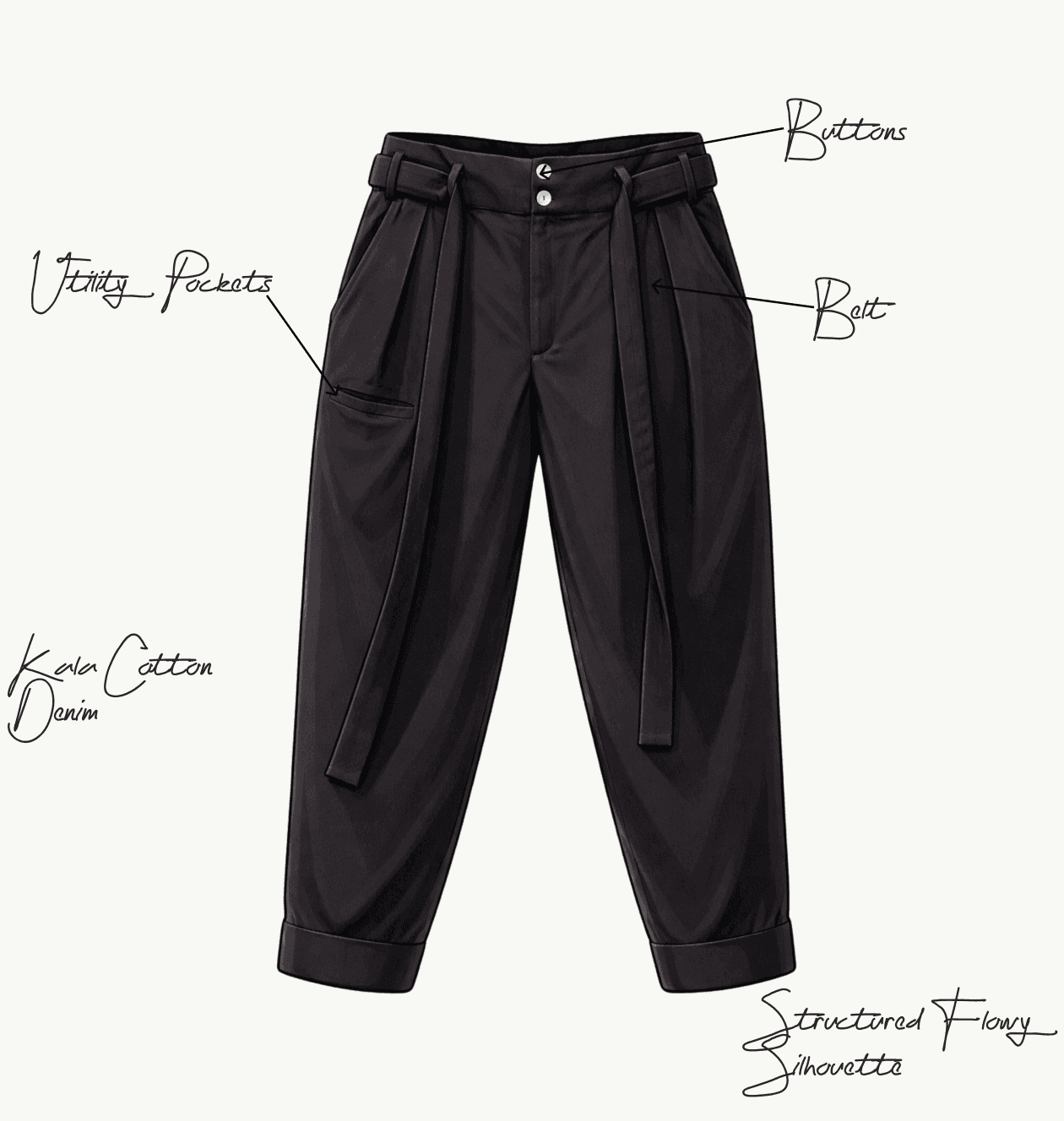 Kunal imagined pants that feel both relaxed and intentional, structured yet fluid. A silhouette that holds presence without trying too hard.