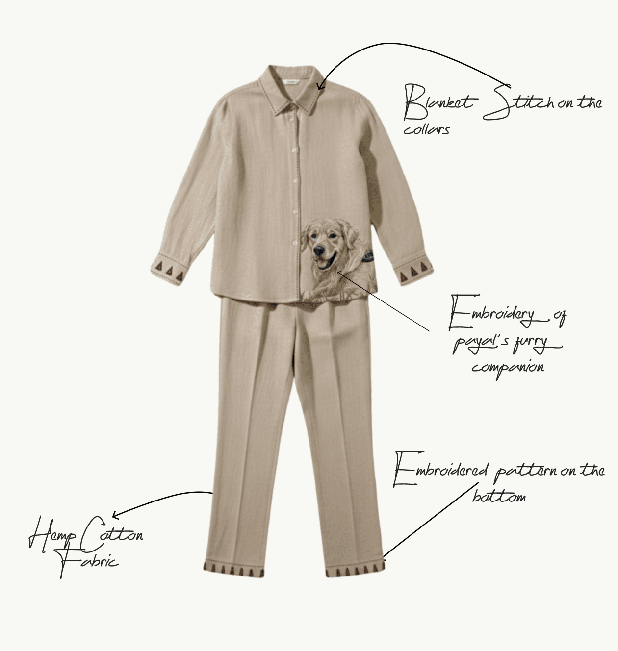 Payal wanted a piece that carries her love for her furry companion, blending comfort with heartfelt storytelling. This set reflects warmth, memory, and everyday joy.
