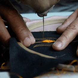 Artisans refine the hemp fabric with precise machine embroidery, ensuring every detail feels light and effortless.